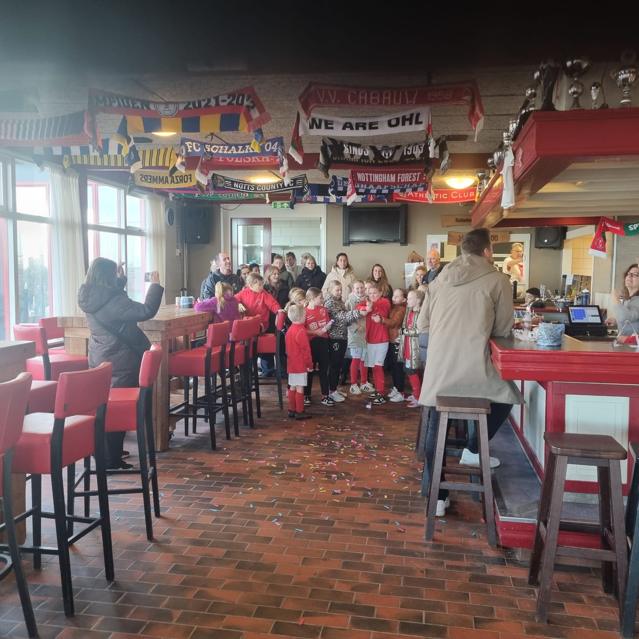 Onze toppers werden feestelijk onthaald bij terugkomst in onze kantine en getrakteerd op heerlijke frietjes en een drankje.